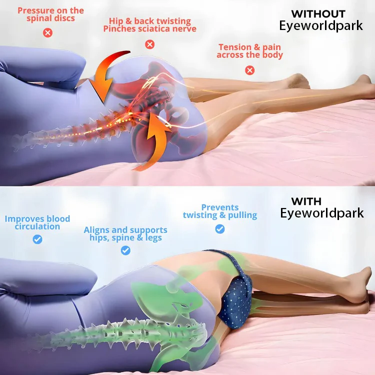 However, a superior solution exists! Nestling the Eyeworldpark Alignment Pillow between your legs rectifies the misalignment, mitigates pain, and shields the sciatic nerve from compression.