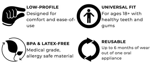 The root cause of sleep apnea lies in the lower jaw falling back into the throat during sleep, obstructing the airway.This leads to frequent breathing interruptions and mid-sleep awakenings.By gently advancing your jaw, SleepEase naturally expands your airway, enabling your body to receive ample oxygen. This eradicates any disruptions in your breathing, allowing for uninterrupted sleep throughout the night.If snoring is disrupting your or your loved ones' rest, anti-snore can assist in achieving a more peaceful sleep and waking up feeling revitalized.