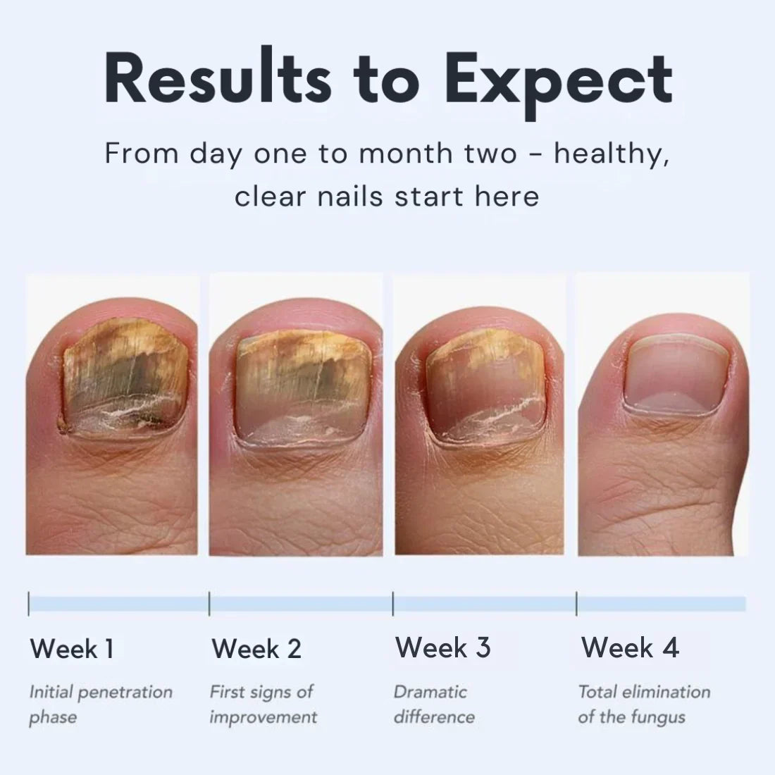 Most users notice improvements within 2 to 4 weeks. Full nail clarity and regrowth may take up to 8–12 weeks depending on the severity of the infection.