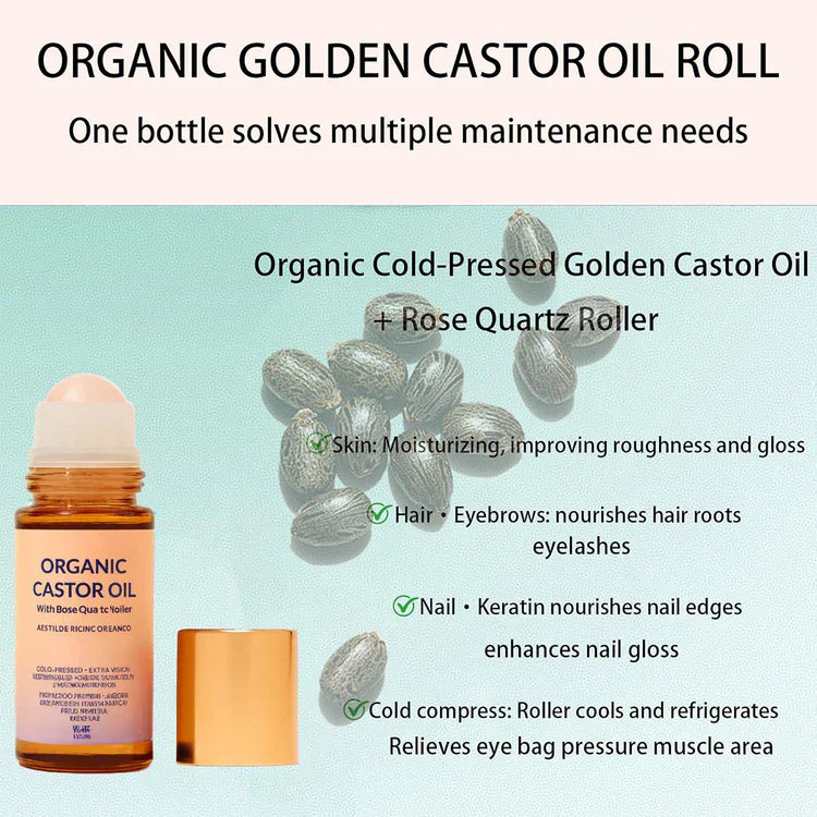 This is a skincare product that combines organic castor oil with a rose quartz roller. Its organic golden castor oil offers deep moisturization, reduces fine lines, and firms the skin; the rose quartz roller not only enhances skin radiance and evens out skin tone but also brings a relaxing self-care experience for both the body and mind.