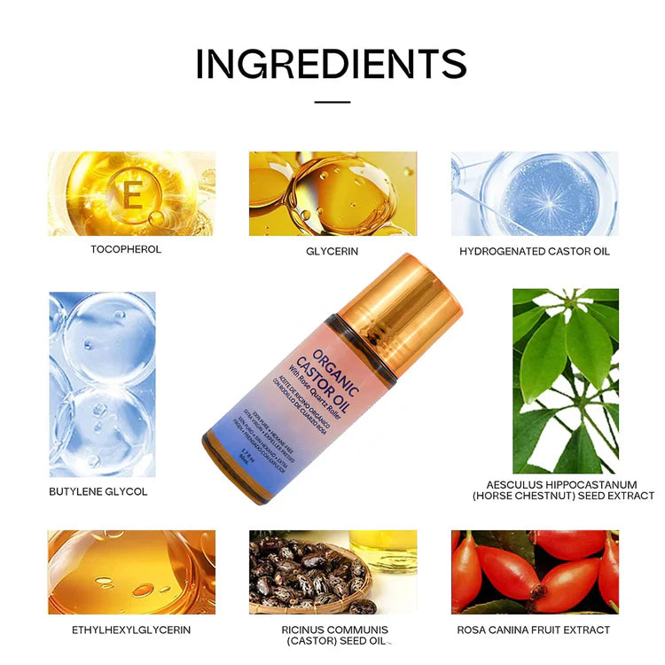 - Added value of the rose quartz roller: Unlike standalone castor oil (which requires manual application), the roller enables precise, smooth distribution of the oil, enhances absorption through gentle massage, and adds a soothing, skin-brightening effect—combining functionality with a relaxing self-care ritual.
