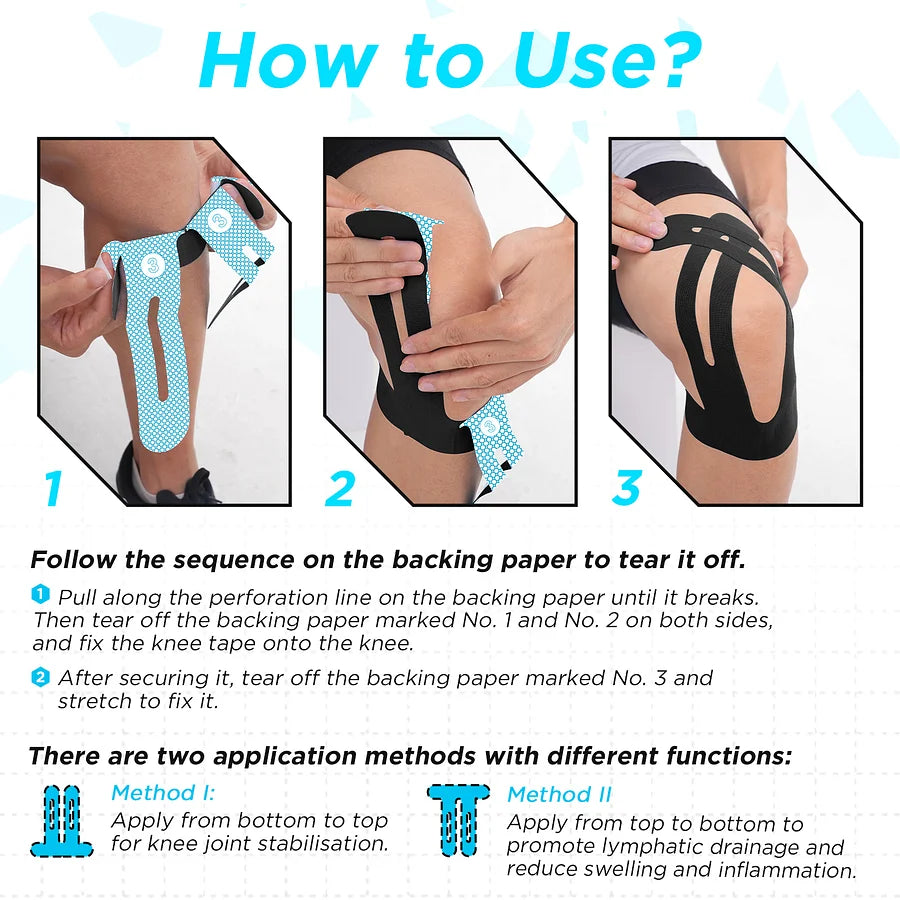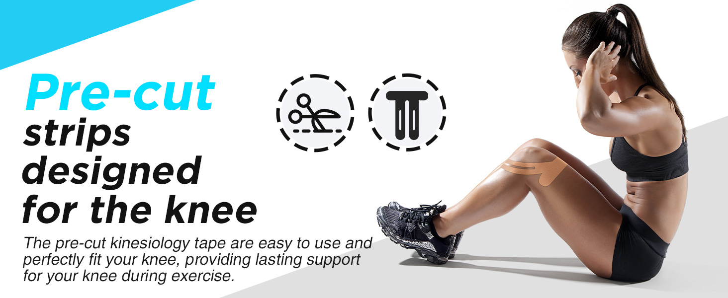 Unique Pre-Cut Design: Our pre-cut kinesiology knee tape are specially produced for use in knee, so tape fits your knee tightly. You can get most knee support & protection when active.