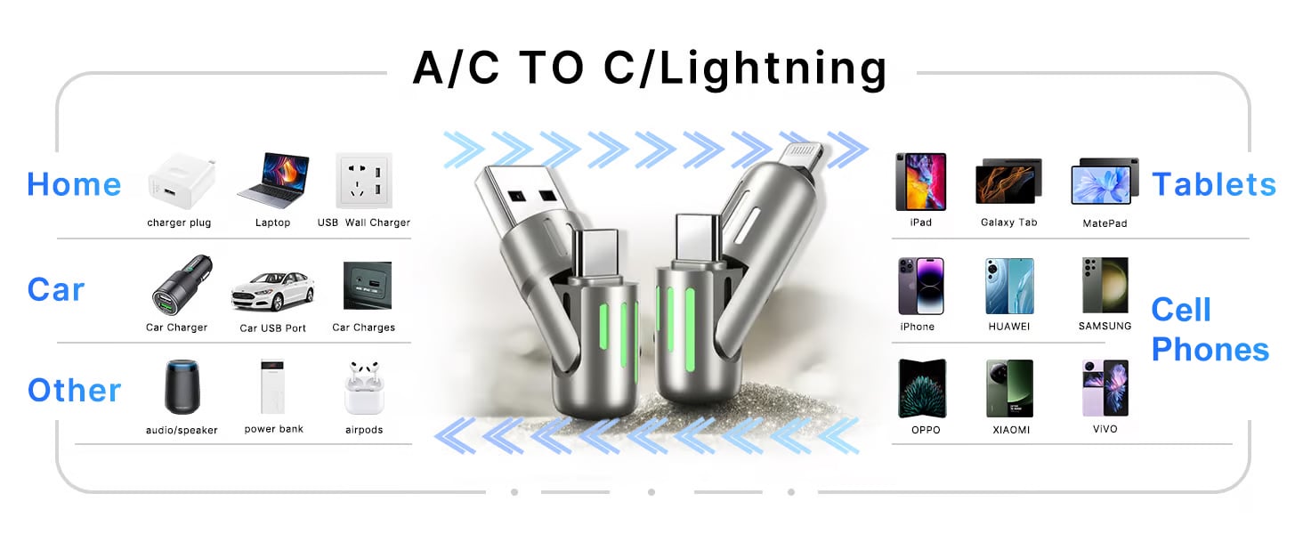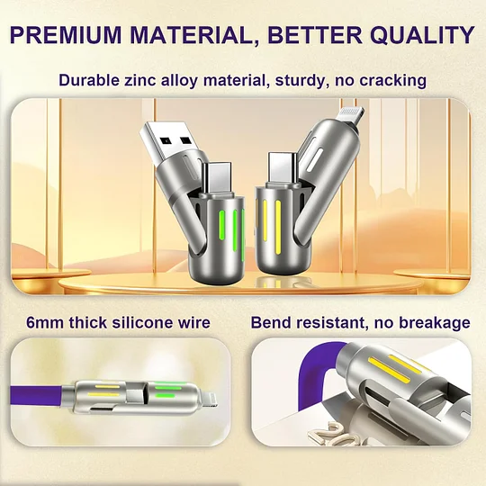 With four connectors in one cable, you can effortlessly charge a variety of devices!