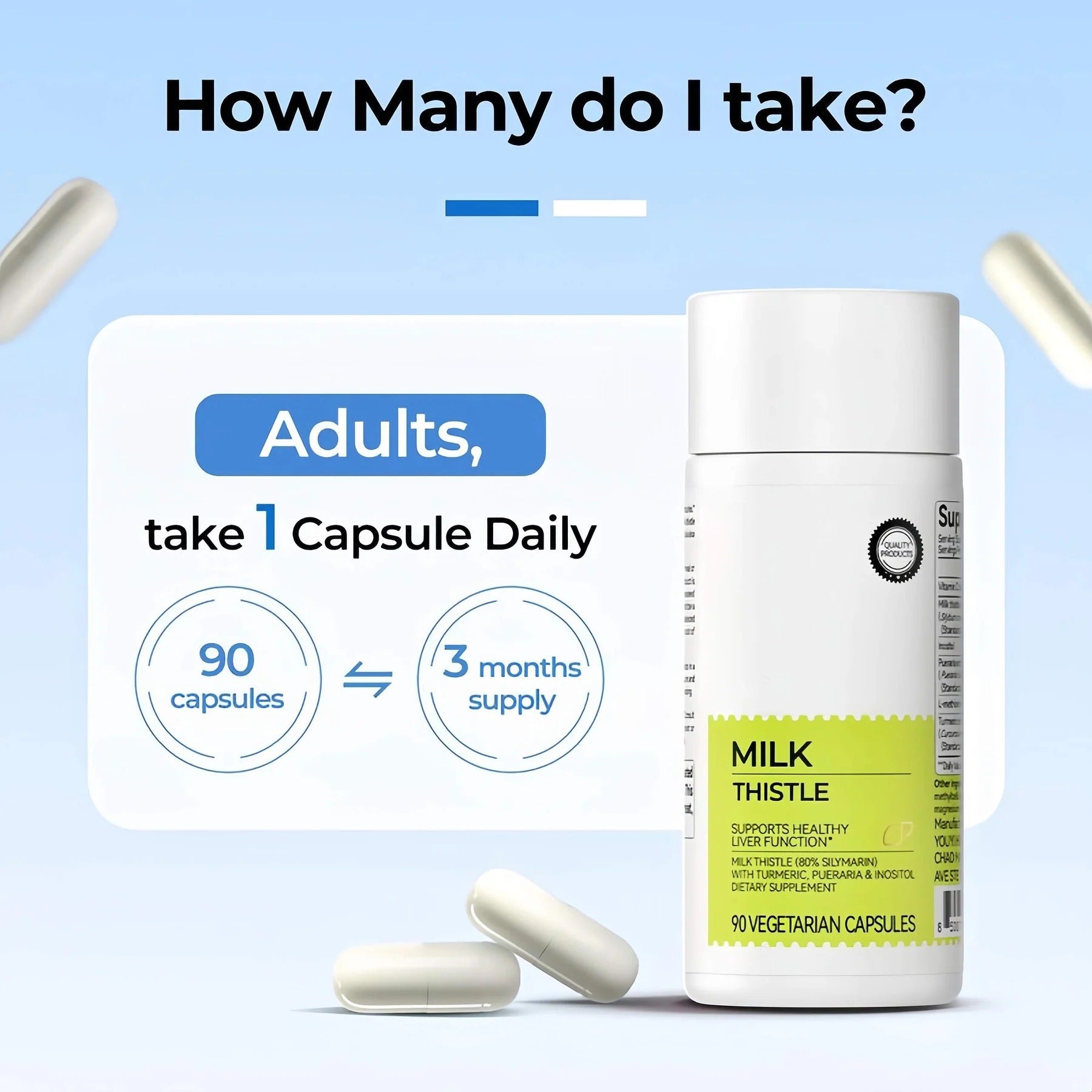 Milk Thistle Liver Detox & Colon Cleanse, Natural Liver Health Support with Kudzu Root, Turmeric, Inositol, Methionine,Vitamin C,90 Capsules silymarin