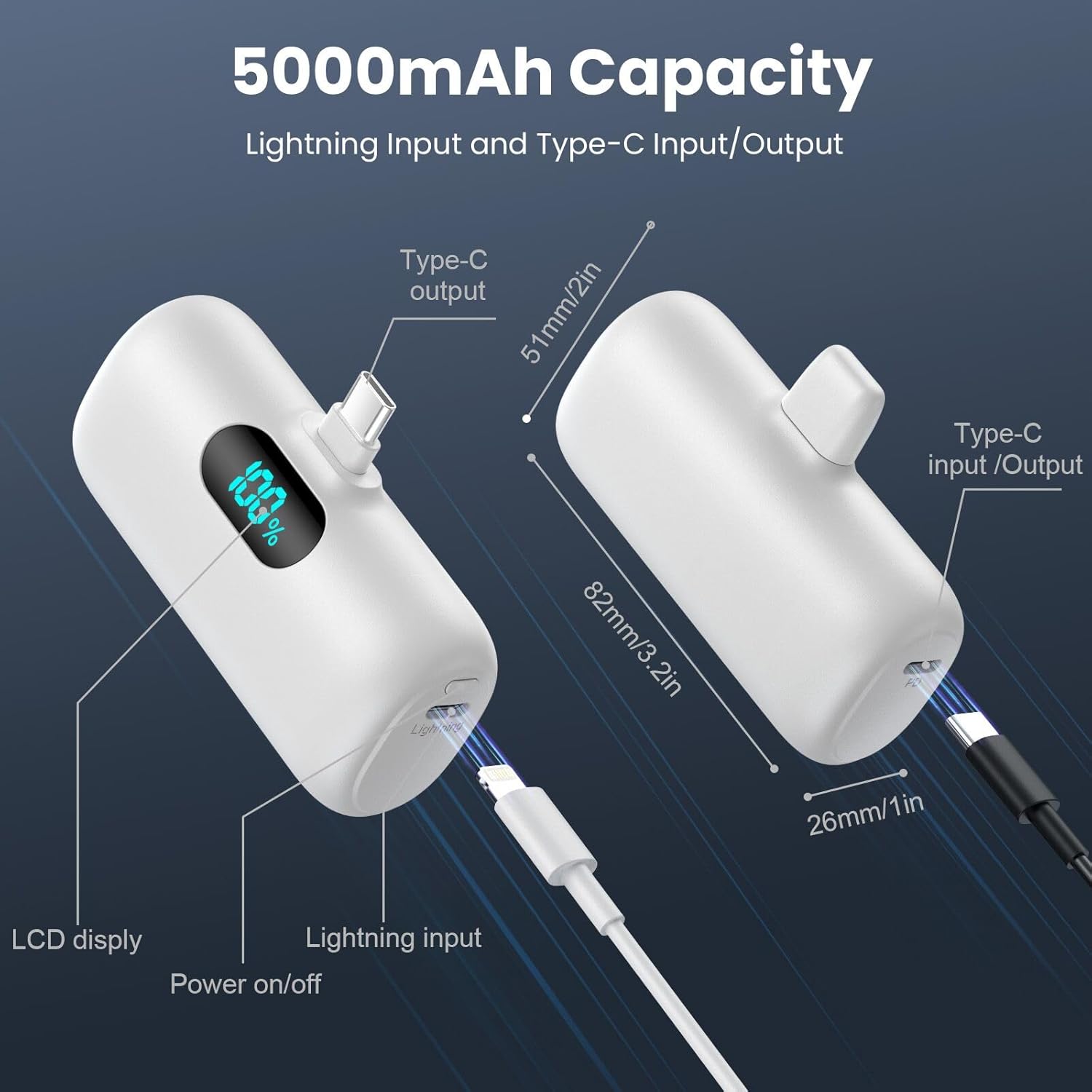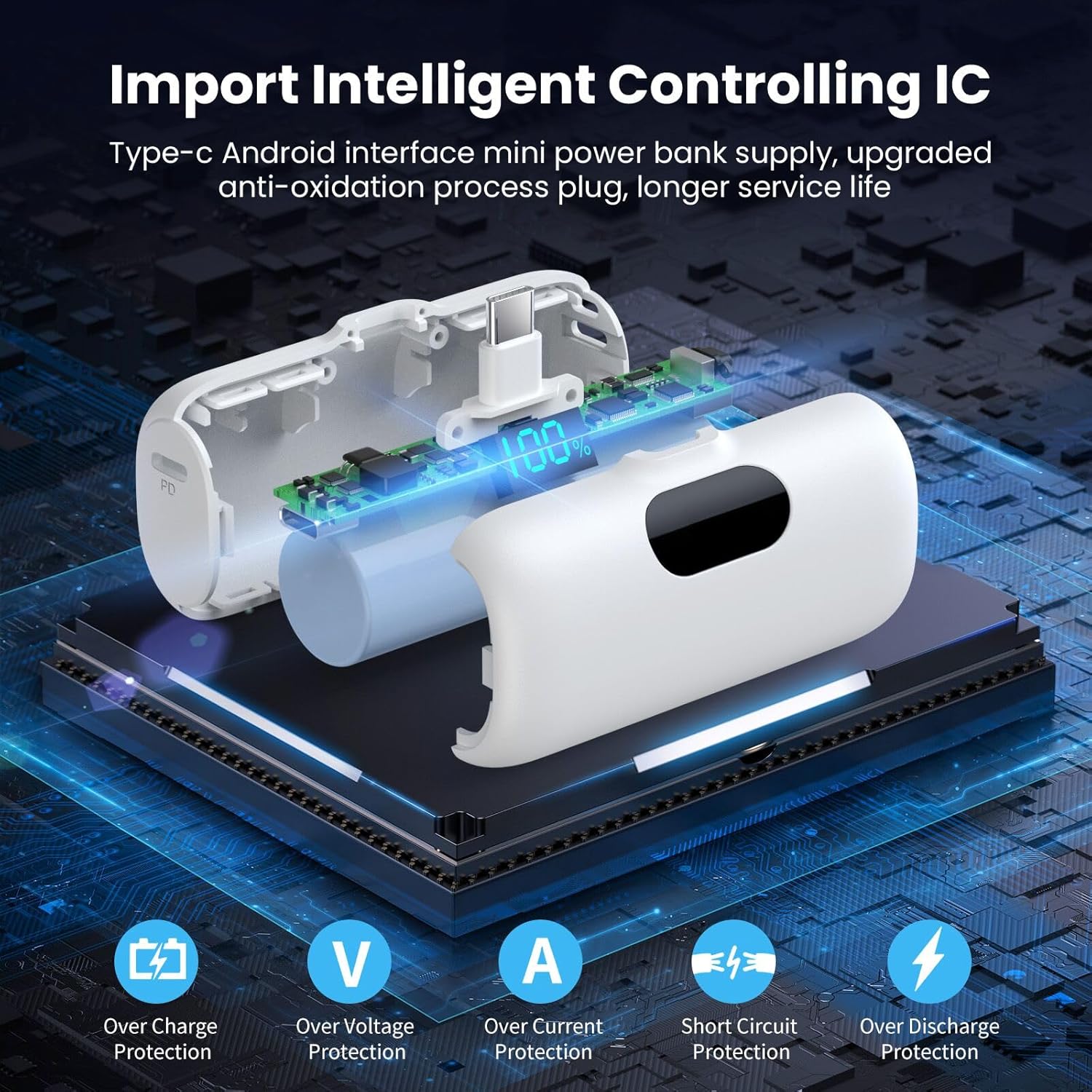 5000mAh mobile phone mini power bank, 22.5W three-output digital display fast charger, lightweight and compact