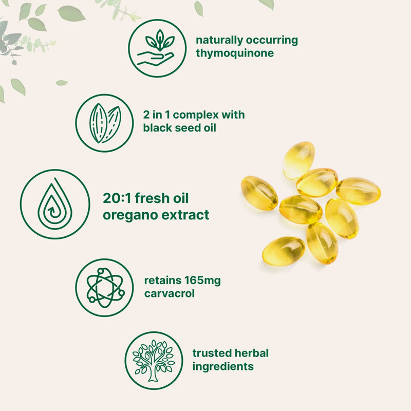 Oregano Oil and Black Seed Oil havebeen used for centuries for their healing properties.Our formula brings these time-tested remedies into the modern world,providing a simple, effective wayto support your health.