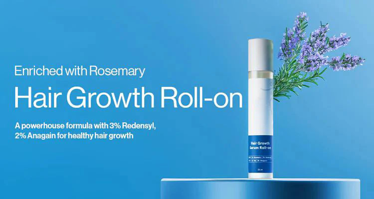 Triple-Action Hair Growth Serum Roll On – 3 % Rosemary, 3 % Redensyl & 2 % Anagain re-activate dormant follicles, boost oxygen delivery and actively block DHT for stronger roots and thicker strands.