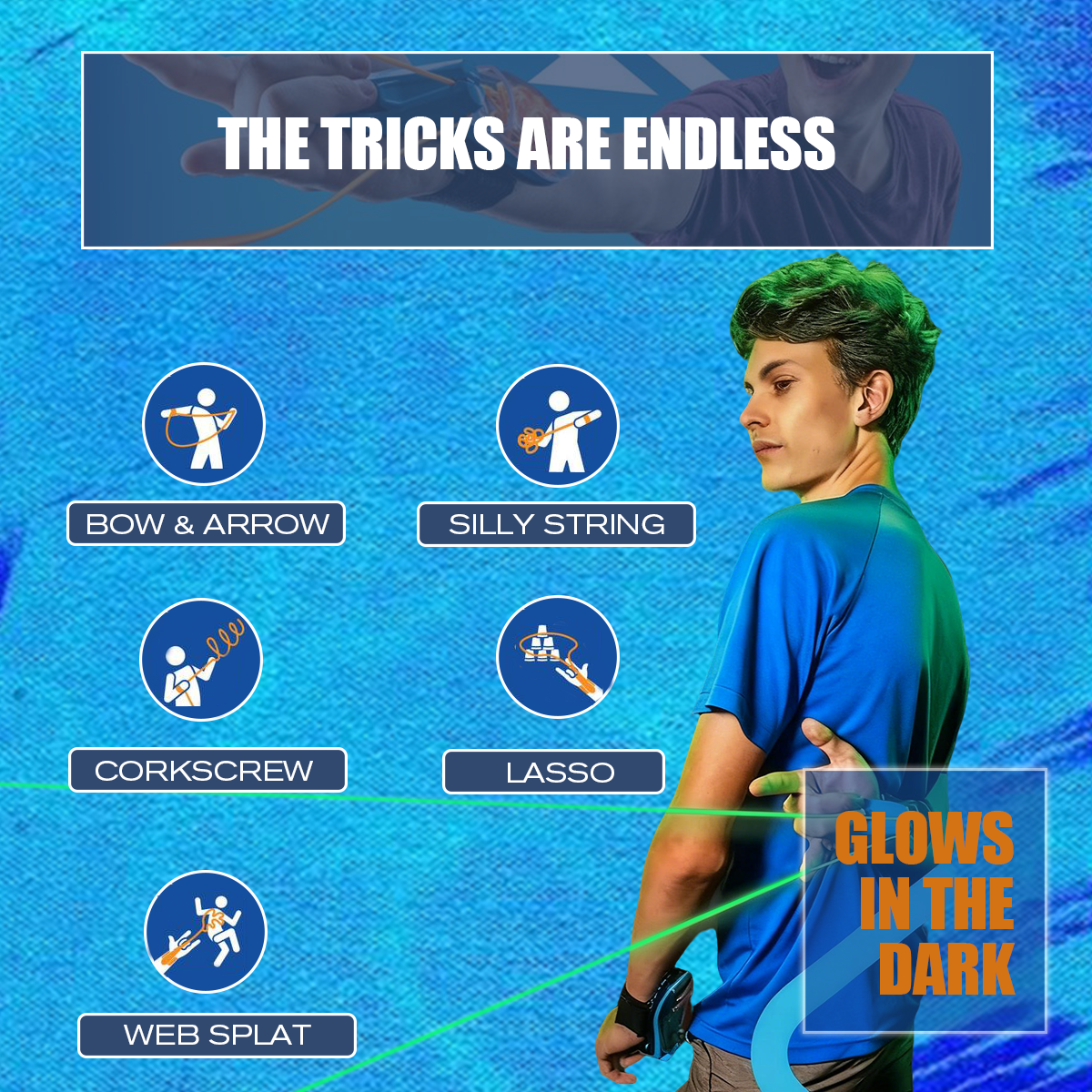 This device blasts out safe, soft strings that float through the air like magic, then retract automatically. It’s designed to feel smooth and powerful in the hand, perfect for fast tricks and creative play. With durable strings and quick recharging, it’s built for hours of non-stop excitement.